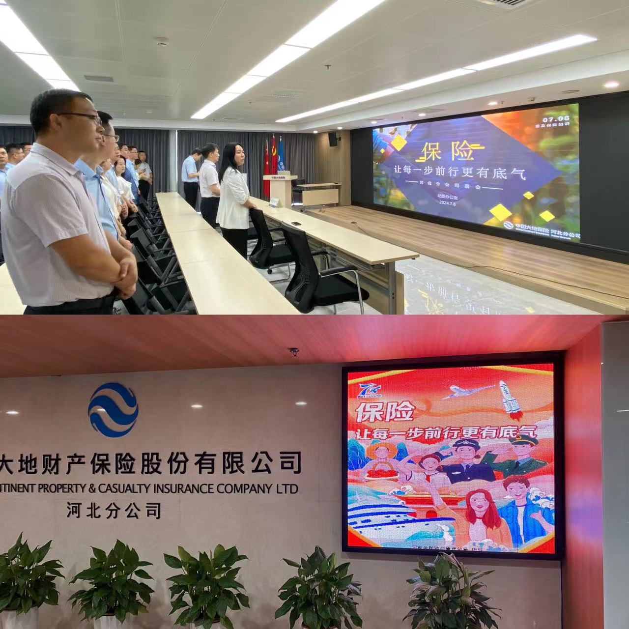 河北分公司召開“保險,讓每一步前行更有底氣”主題晨會,分公司LED大屏輪播宣傳海報。在機構,利用網點優勢,張貼宣傳條幅及海報,在客服中心的電子屏上循環播放“7.8全國保險公眾宣傳日”宣傳短片和海報,為上門客戶普及金融知識。同時,通過微信公眾號、超級APP進行朋友圈、微信群等線上多媒體平臺宣傳,不斷提升公眾對保險的認識。
